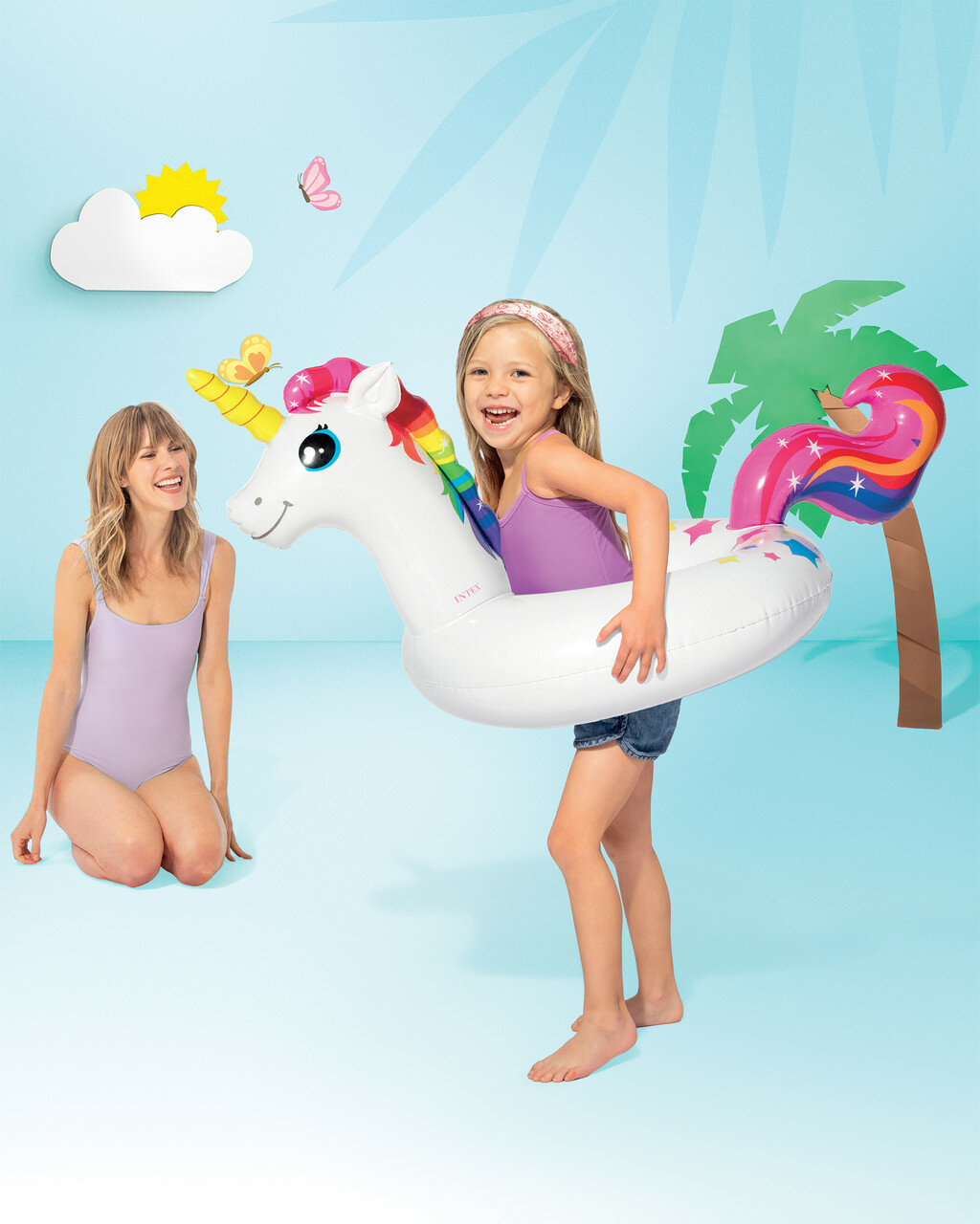Купить Надувной круг для плавания INTEX Зверюшки 78х57 см, для детей от 3 до 6 лет на пляж и в бассейн, нагрузка до 30 кг, плотный с рисунком, без насоса, прочный, цвет микс / 1 шт