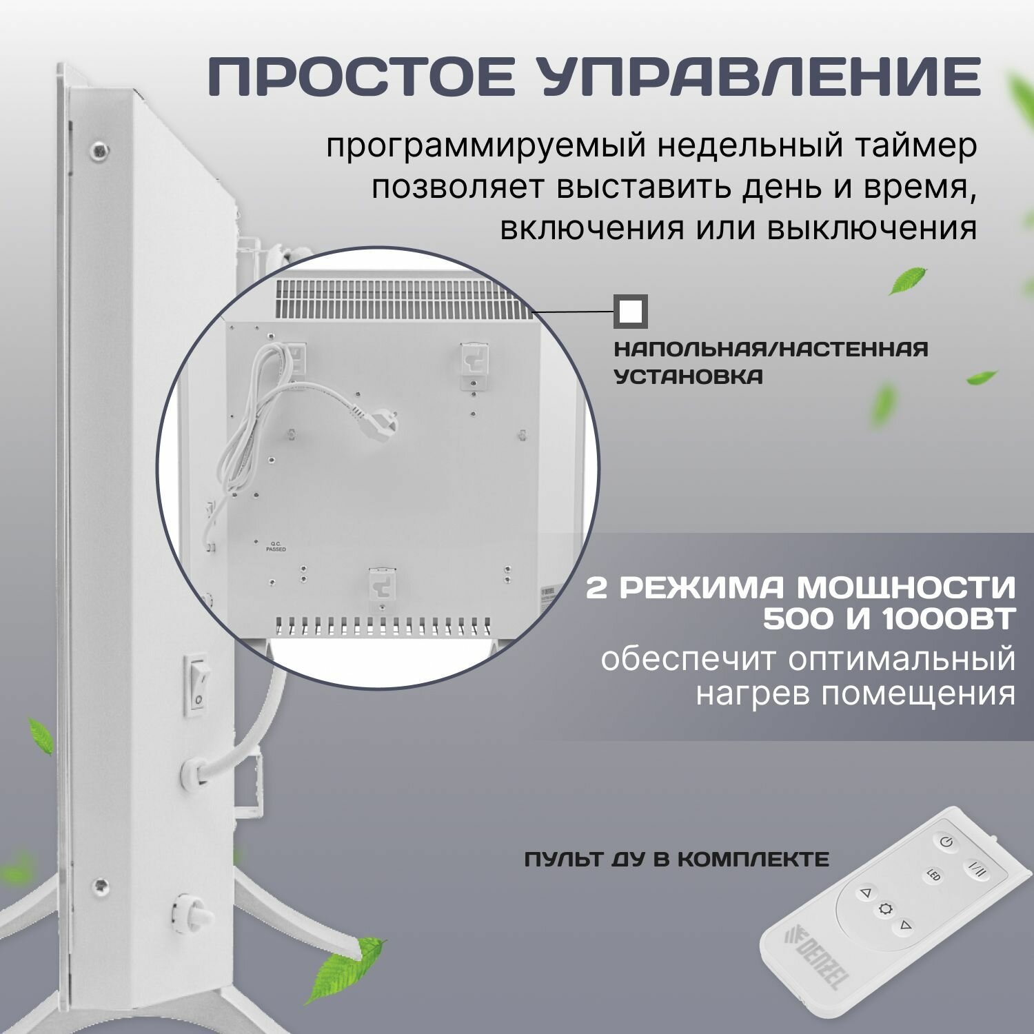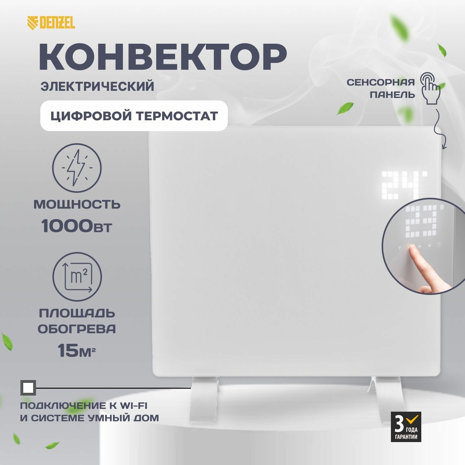 Конвектор электрический DENZEL OptiPrime-1000, Wi-Fi, тачскрин, цифровой термостат, 1000 Вт