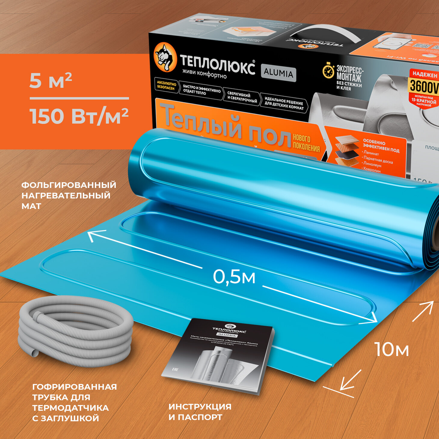 Купить Ультратонкий теплый пол. Нагревательный мат "Теплолюкс" Alumia 750 Вт/5,0 кв.м