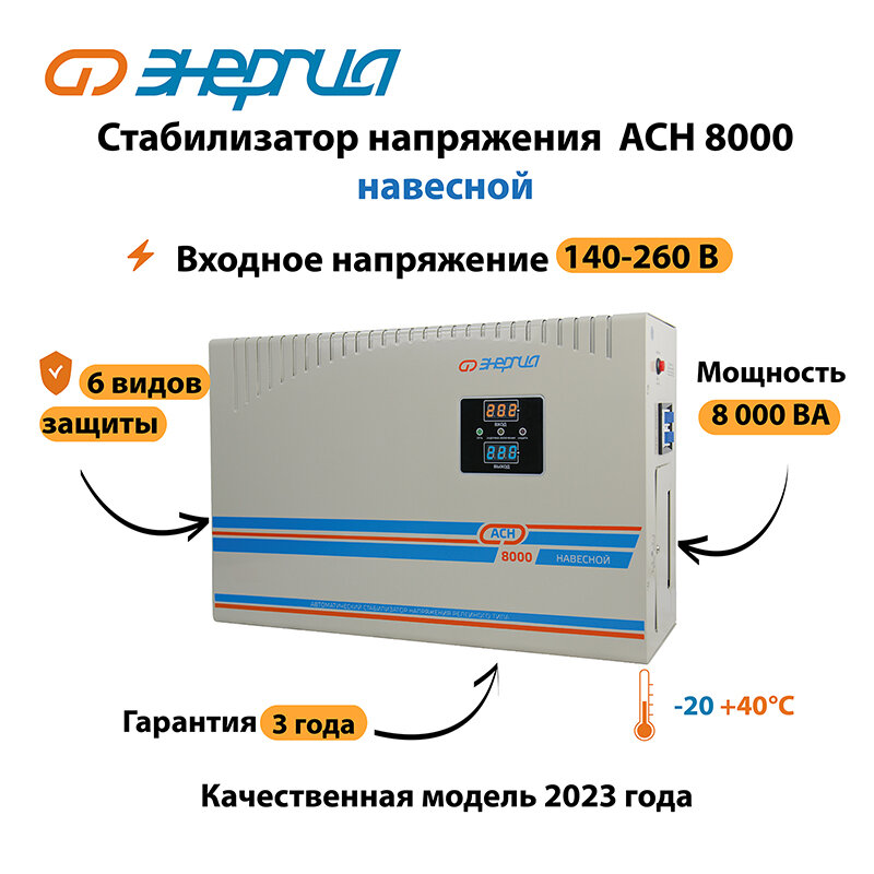Стабилизатор напряжения Энергия АСН 8000 навесной (8000 ВА, 50Гц) (Е0101-0213)