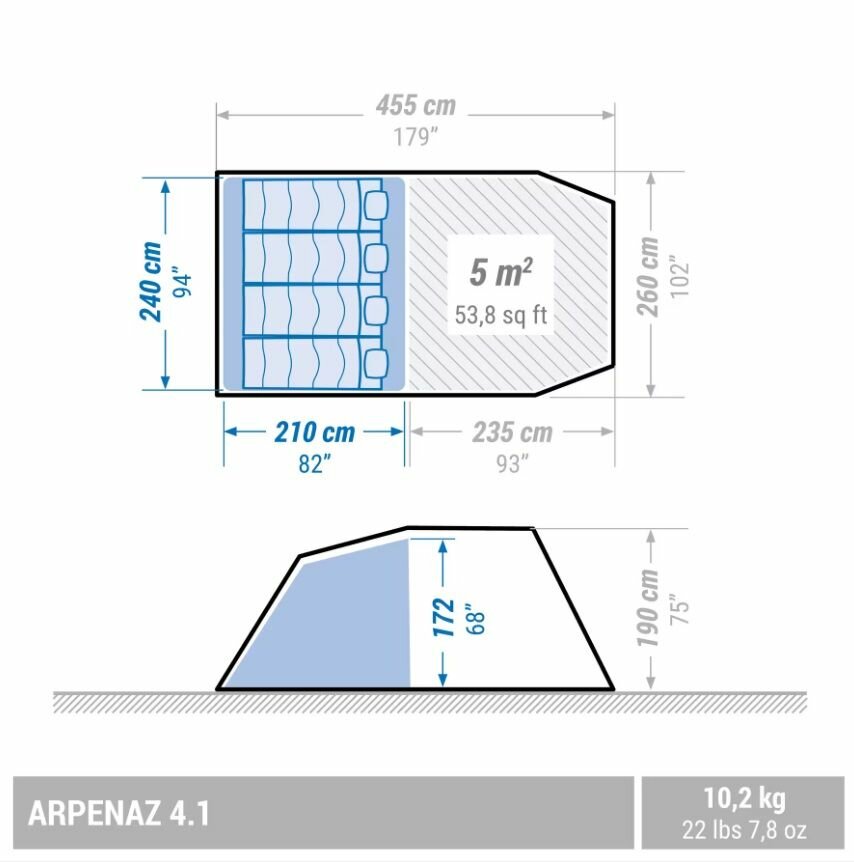 Палатка кемпинговая Decathlon Quechua Arpenaz 4.1 F&B четырехместная интересное: