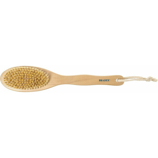 Щётка для сухого массажа из чайного дерева с щетиной кактуса с ручкой 30 см BRADEX, Tea tree dry massage brush 1шт интересное: