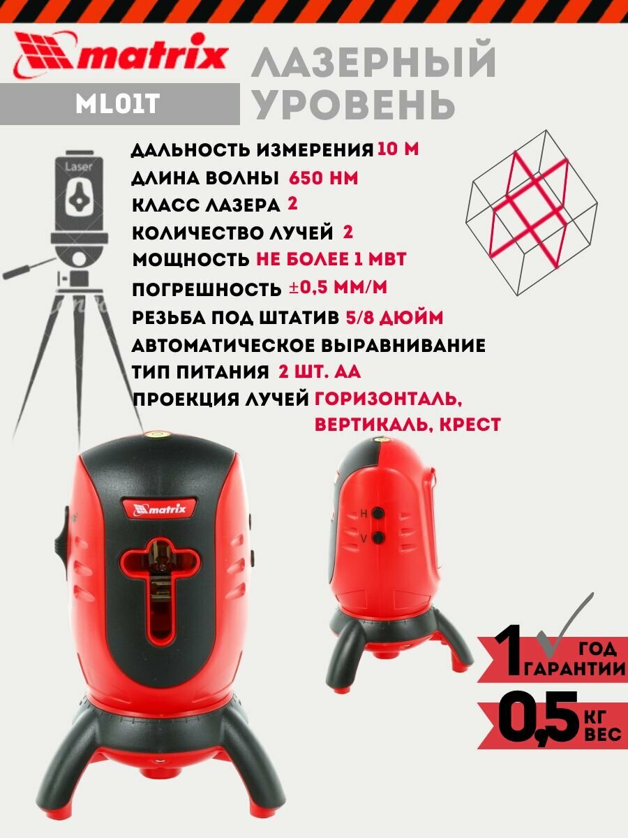 Лазерный уровень ML01, 10м, ±0,5мм/1м, 650нм, 1 верт. 1 гор. пл., резьба 5/8"// Matrix