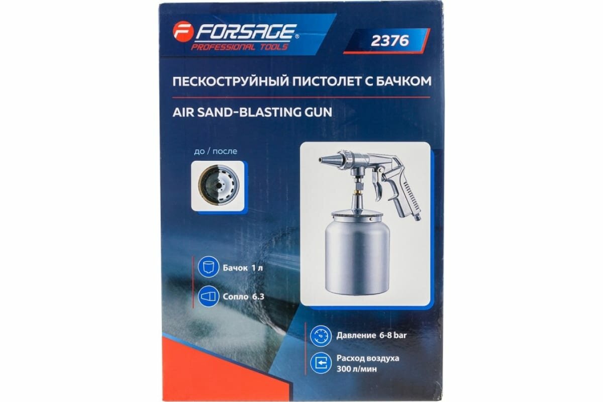 Пистолет пневматический пескоструйный, емкость бачка 1 л , сопло 6.3 мм, 8 Bar, расход воздуха 160 л/мин FORSAGE F-2376 | цена за 1 шт | минимальный заказ 1