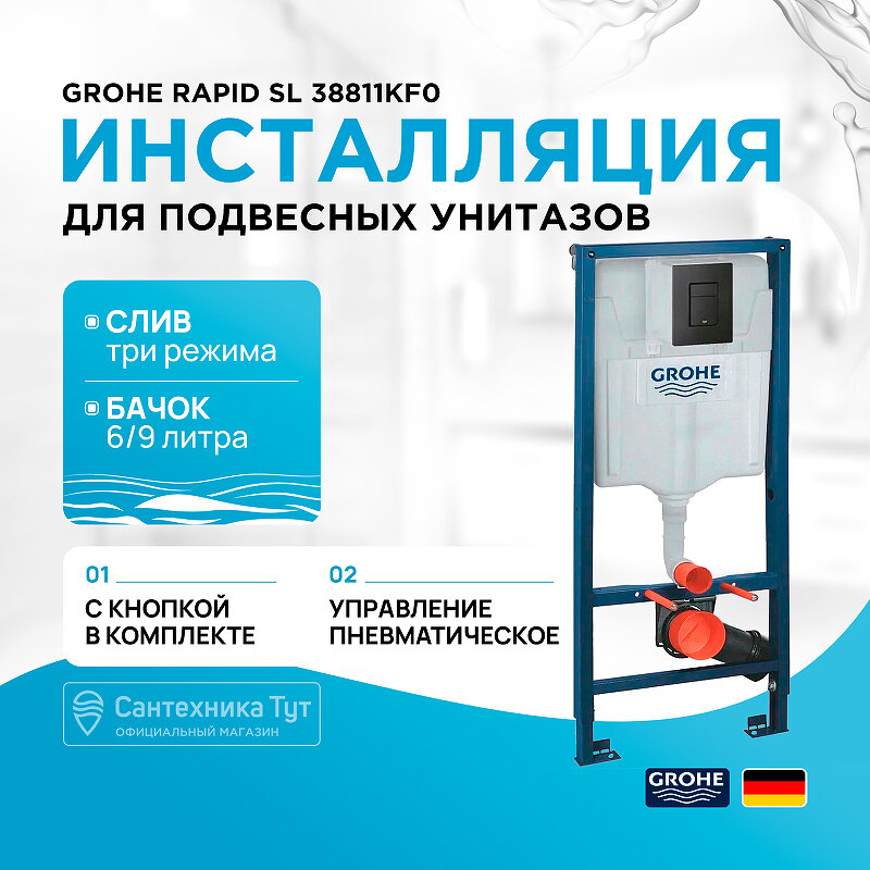 Система инсталяции для подвесного унитаза 3 в 1, Rapid SL, Grohe 38811 KF0 (38811KF0)