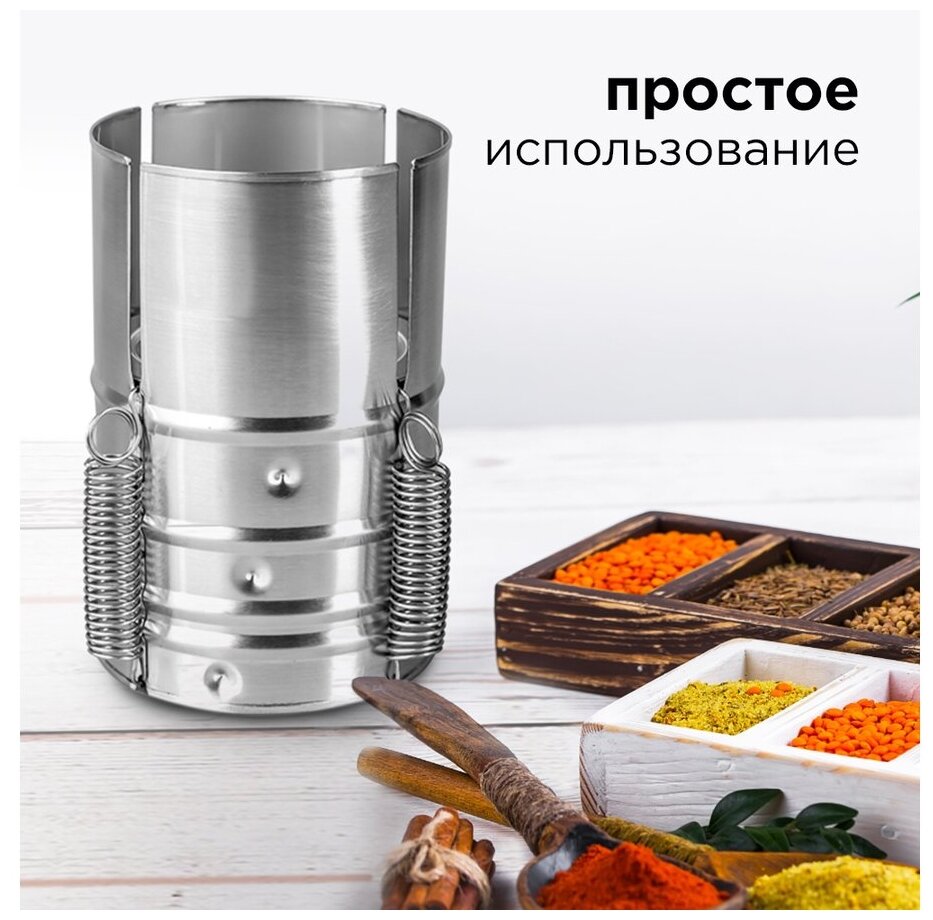 | Плюсы: | Недорогое, удобное и простое приспособление для приготовления разных колбас, ветчины, мясных рулетов |