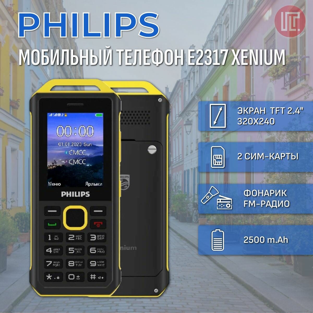 СохранитьМобильный телефон Philips Xenium E2317 Желто-черный . интересное: