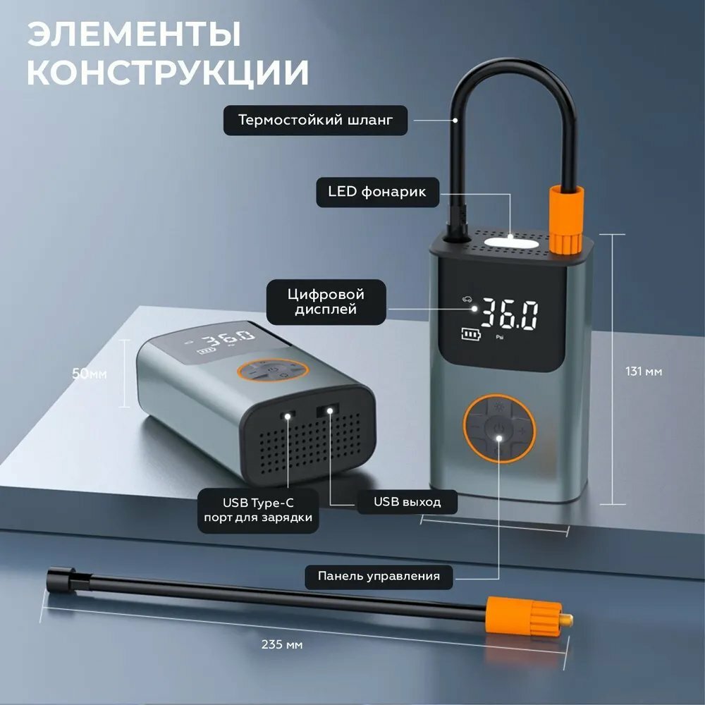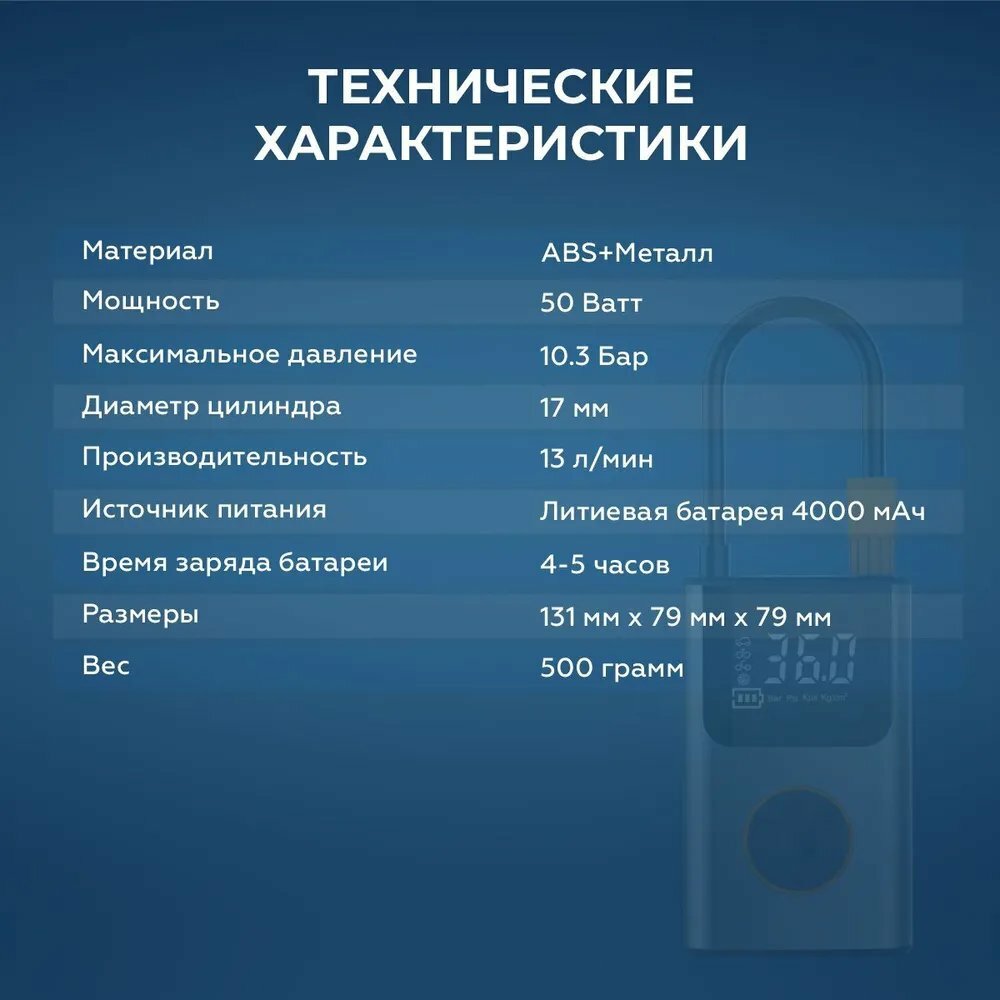| Подробная комплектация | Автокомпрессор, Насадки, Зарядный кабель, Инструкция на русском, Упаковка |