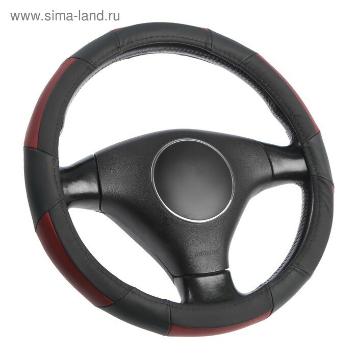 Оплетка CAMC AH3251-2 / Чехол на руль экокожа черный / бордовый (каркасный) 44-45 см