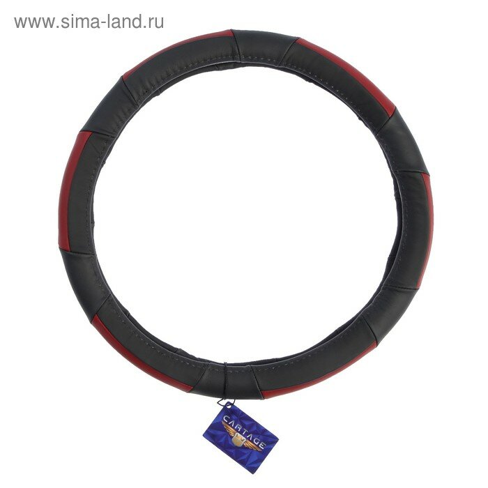 Оплетка на руль Cartage, натуральная кожа, размер 38 см, черно-красный интересное: