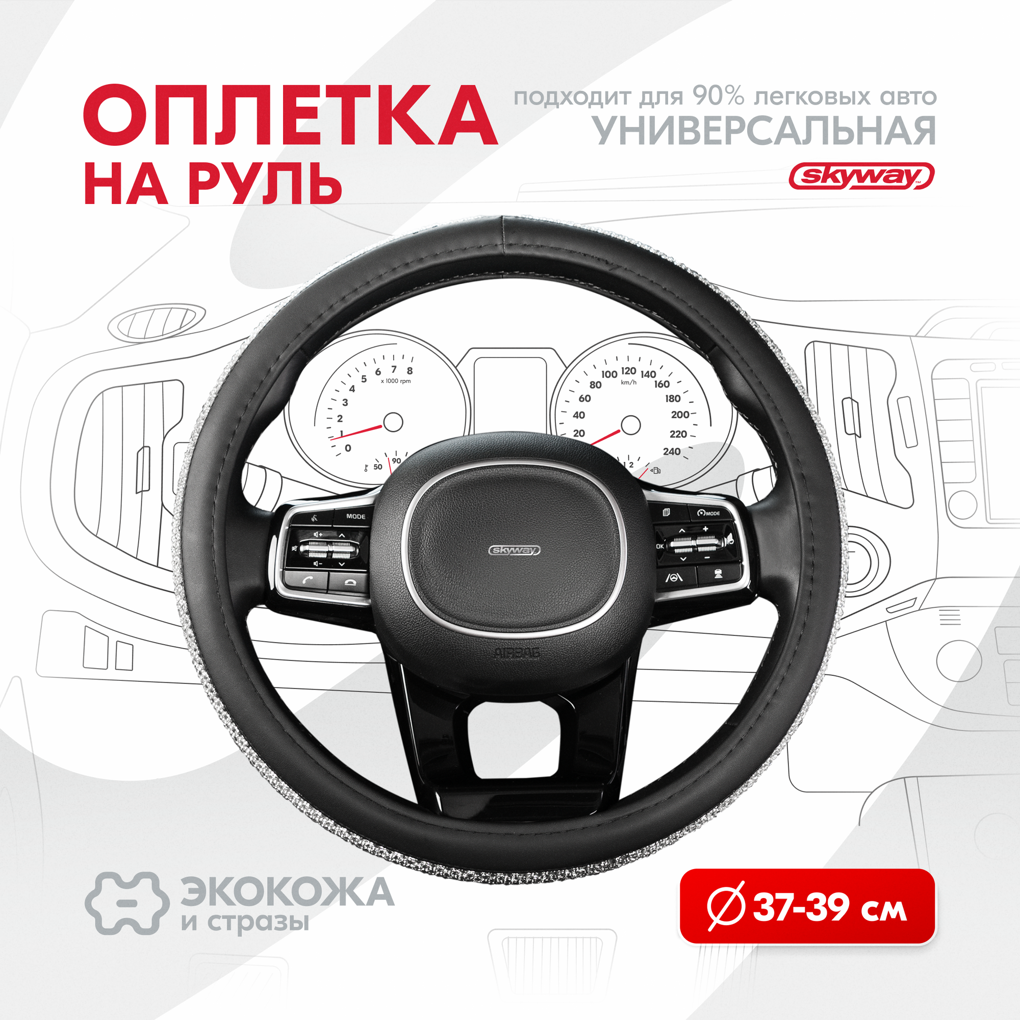 Оплетка SKYWAY Crystal-1 для руля диаметром 37/38/39см, экокожа, размер M, со стразами, S01102463