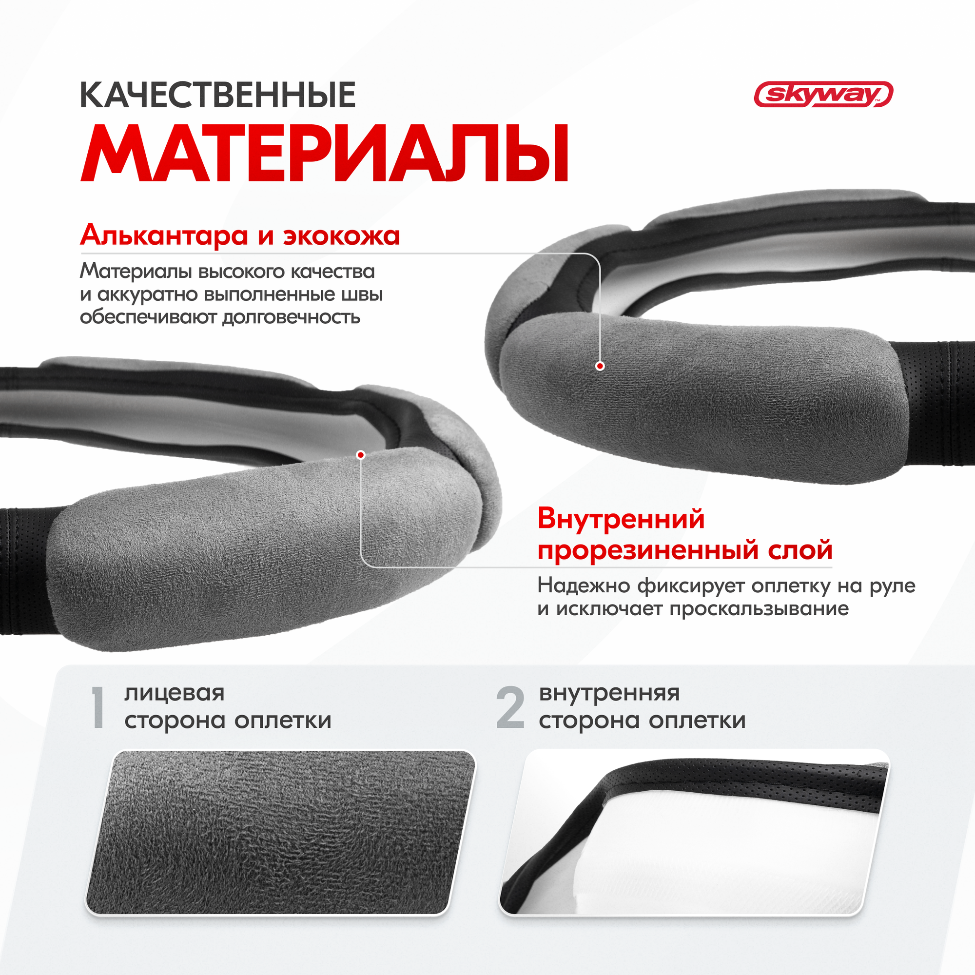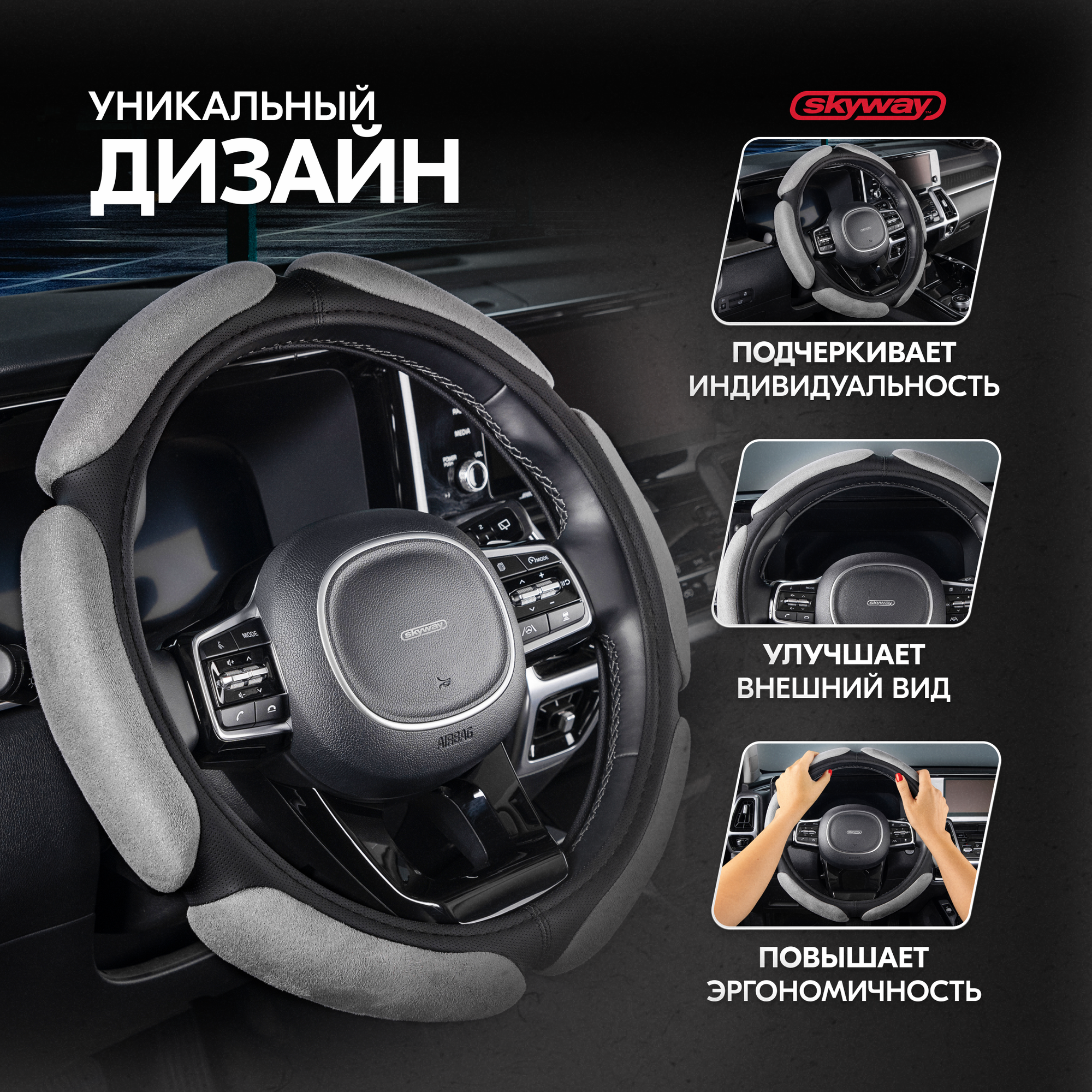 Оплетка на руль Top-12 SKYWAY M (37-39) серый экокожа, S01102501