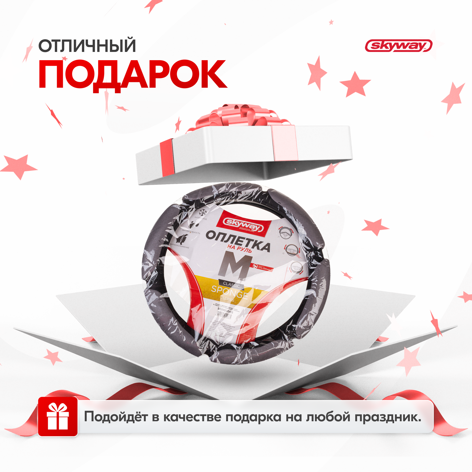 Оплетка руля SKYWAY Sponge Classic M 37/38/39, алькантара/экокожа, черный, размер М, S01101018