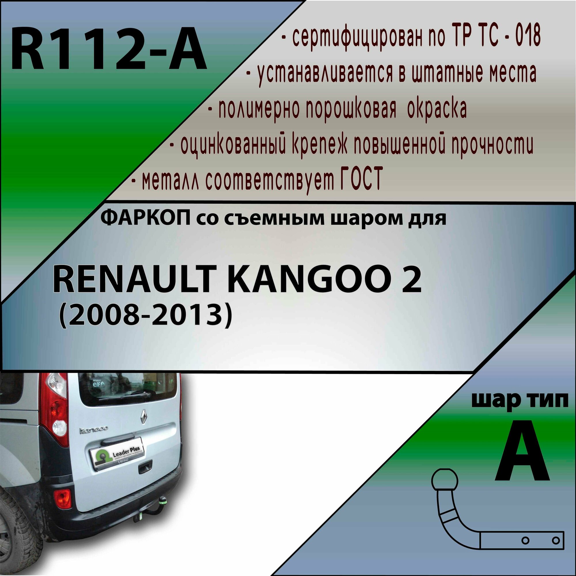 Фаркоп (ТСУ) Renault Kangoo 2 (2008-2013) со съемным шаром "Лидер-Плюс" (без эл/пак.) Leader Plus R112-A
