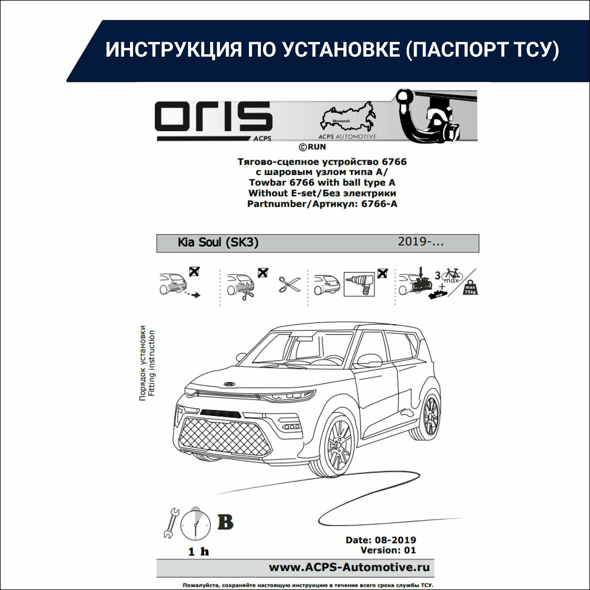 ORIS 6766-A Фаркоп для KIA Soul SUV 2018-.. (без электрики)