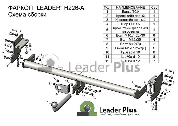 Фаркоп H226-A Лидер плюс для HYUNDAI TUCSON 2015-2018 / KIA SPORTAGE 2016-2018 (без электрики)