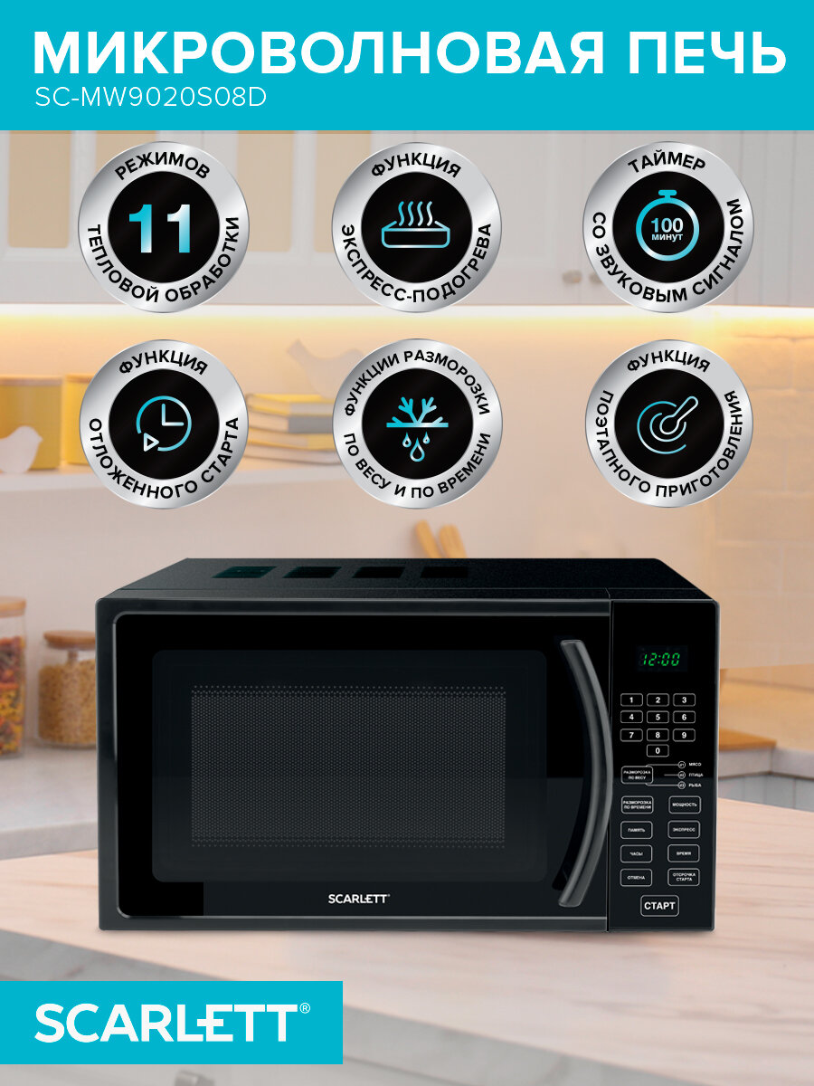 Микроволновая печь Scarlett SC-MW9020S08D (черный) интересное: