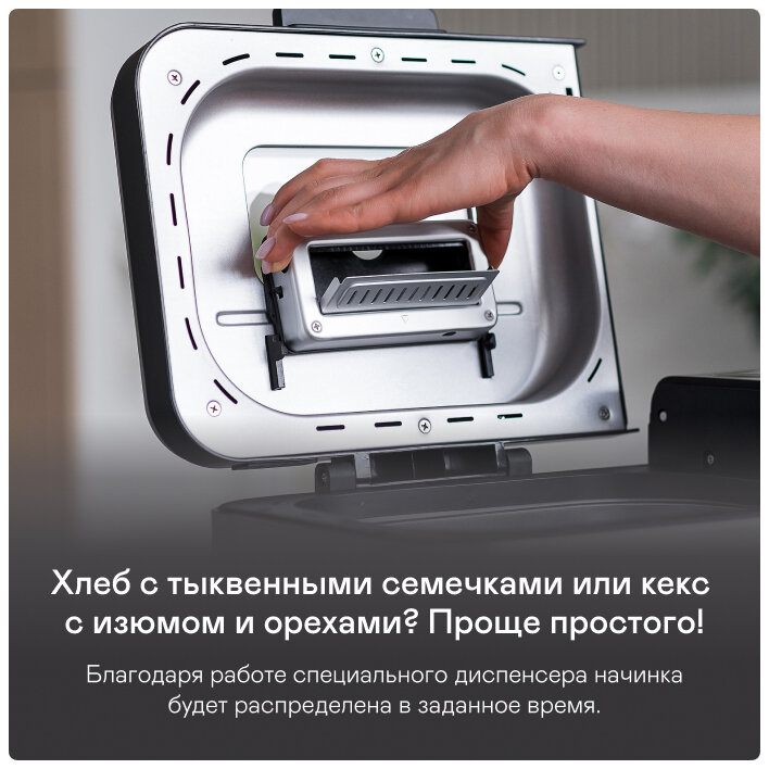 Одним из первых приготовленных блюд стал бородинский хлеб. Вся семья оценила, съели моментально. Хлеб пропекся равномерно, без влажности, с красивой золотистой корочкой. Особенно мне понравилось, что есть функция которая позволяет выбрать степень прожарки корочки. Чаша большая, можно печь буханки до полутора килограмм весом, внутри покрыта керамическим антипригарным покрытием. Классная штука диспенсер, автоматически добавляет разные начинки на нужно этапе приготовления. Иногда пеку хлеб с тыквенными семечками или с кунжутом. Для кексов вообще отлично, изюм как раз идеально набухает - не сухой и не сильно размоченный, такой себе “альденте”)))) Рисовую кашу на молоке готовит шикарно, дети наворачивают за обе щеки. Вообще в ХП 25 программ, можно готовить что угодно, даже супы. Есть таймер, отсроченный старт до 15 часов - я не пользуюсь, но кто работает, пригодится. Печки рекомендую, всегда столе свежий и ароматный хлеб, вкус которого не сравнится даже с хорошим покупным хлебом из дорогой пекарни. |