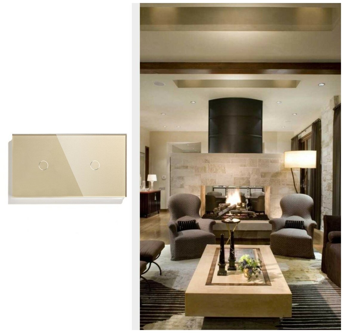 Два умных одиночных WiFi выключателя Tuya в одной рамке сенсорные золотые для Алисы работает как с нулевым проводом так и без него