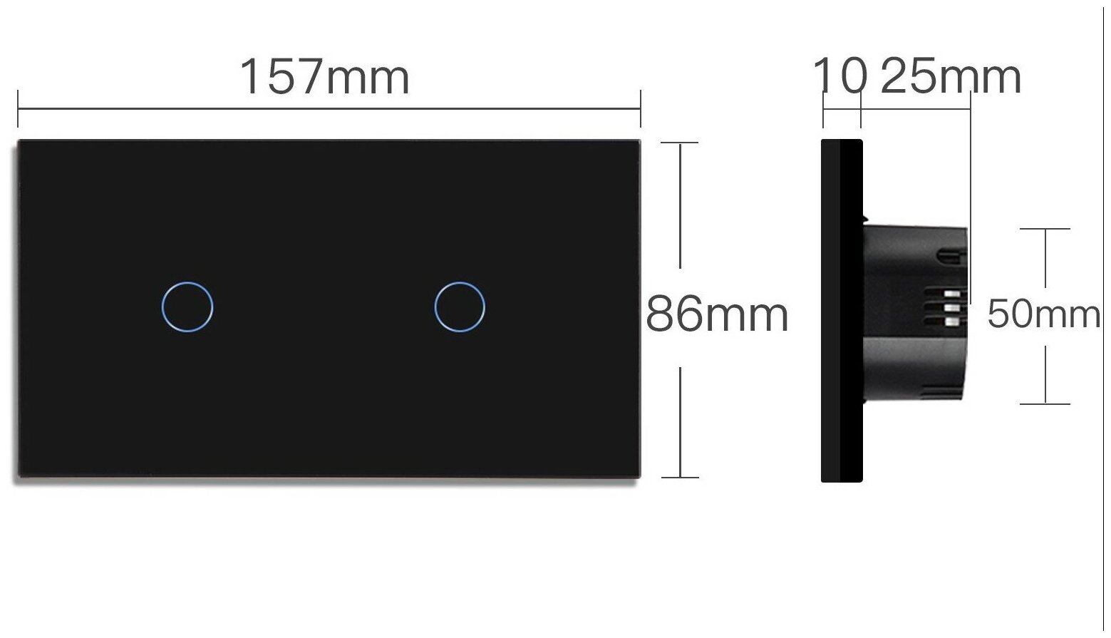 Купить Два умных одиночных WiFi выключателя Terem Techno в одной рамке сенсорные черные Tuya / Smart Life / Digma для Алисы работает как с нулевым проводом так и без него