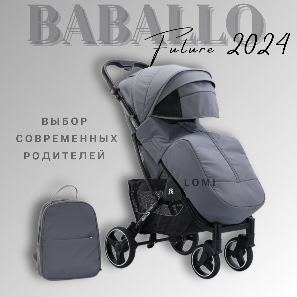Детская прогулочная коляска Baballo future 2024, Бабало серый на черной раме, механическая спинка, сумка-рюкзак в комплекте