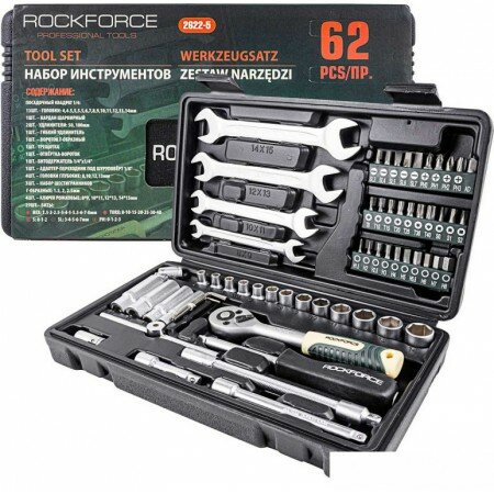 Набор инструмента Rock Force ROCKFORCE 1/4"DR 6-гранные головки, глубокие, 62 предмета