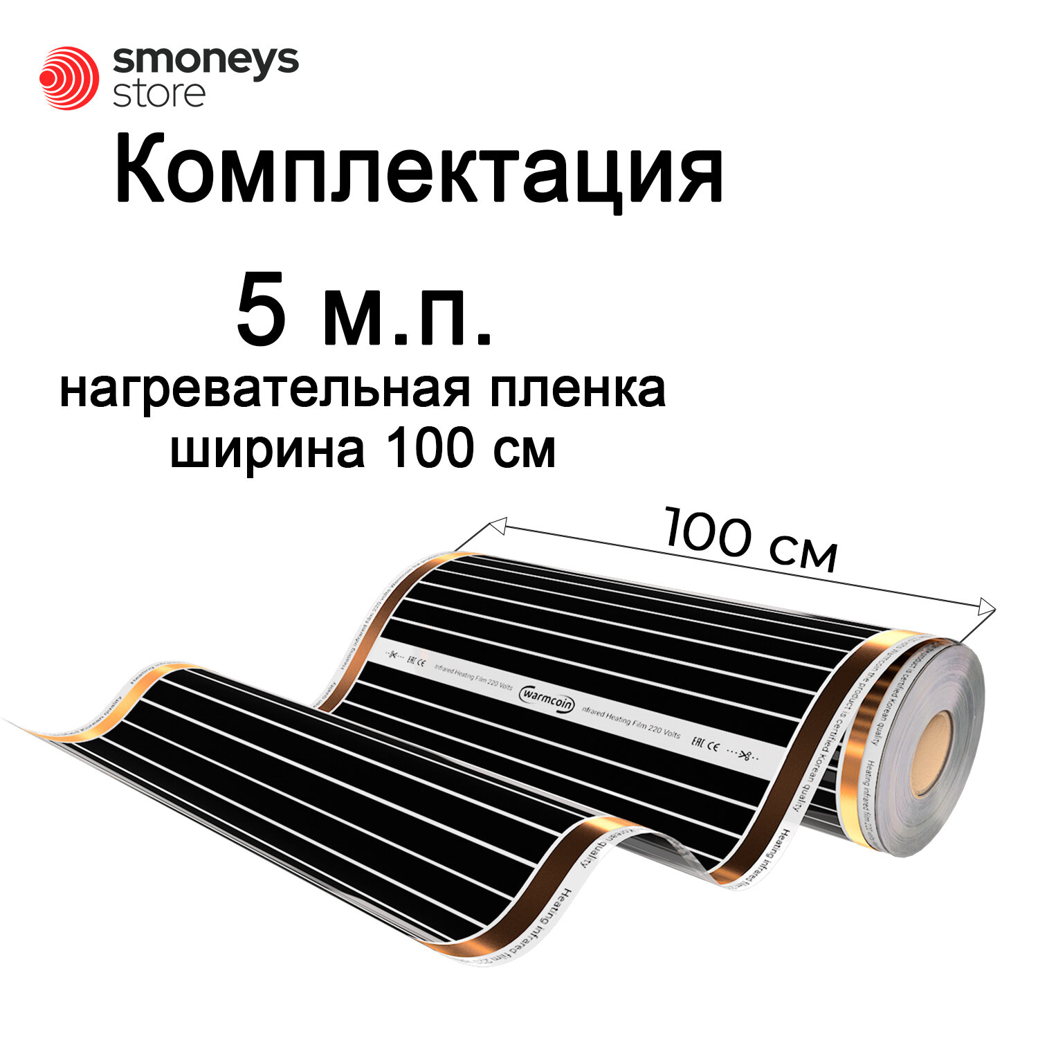 Теплый пол Warmcoin инфракрасный 100см 220Вт/м.кв. под ламинат, 6 м.п