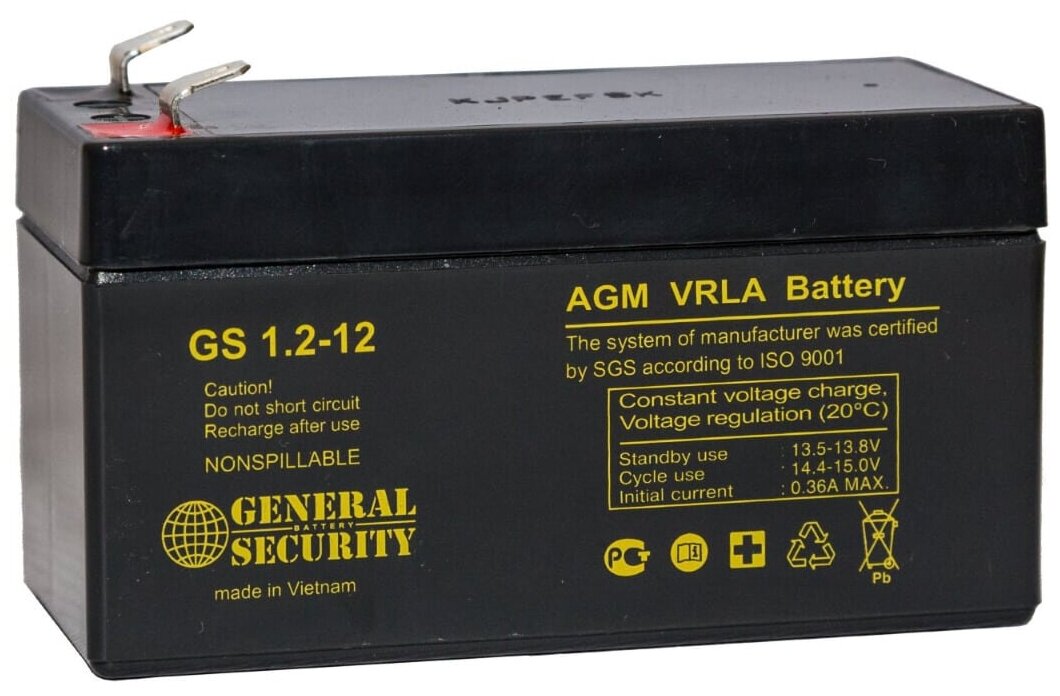 Аккумулятор General Security GS 1.2-12 (12В, 1.2Ач / 12V, 1.2Ah) интересное: