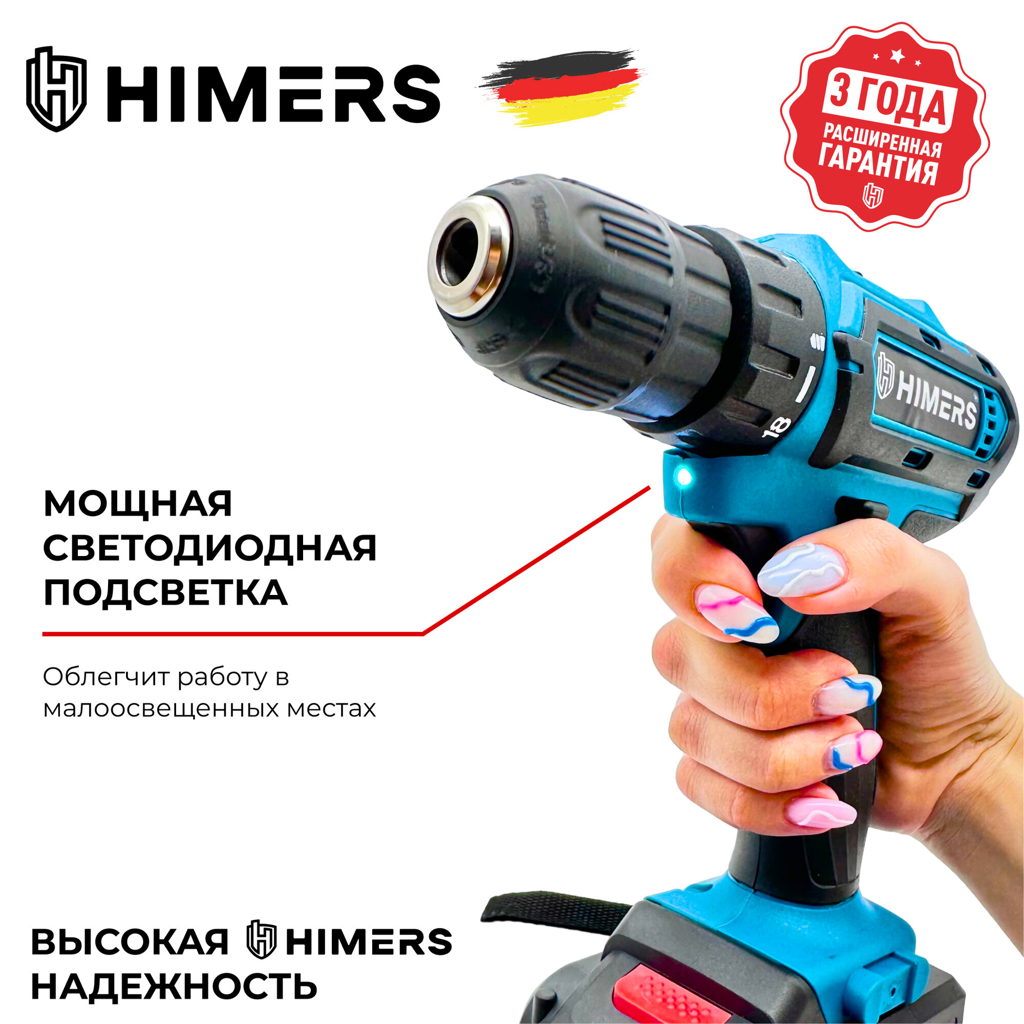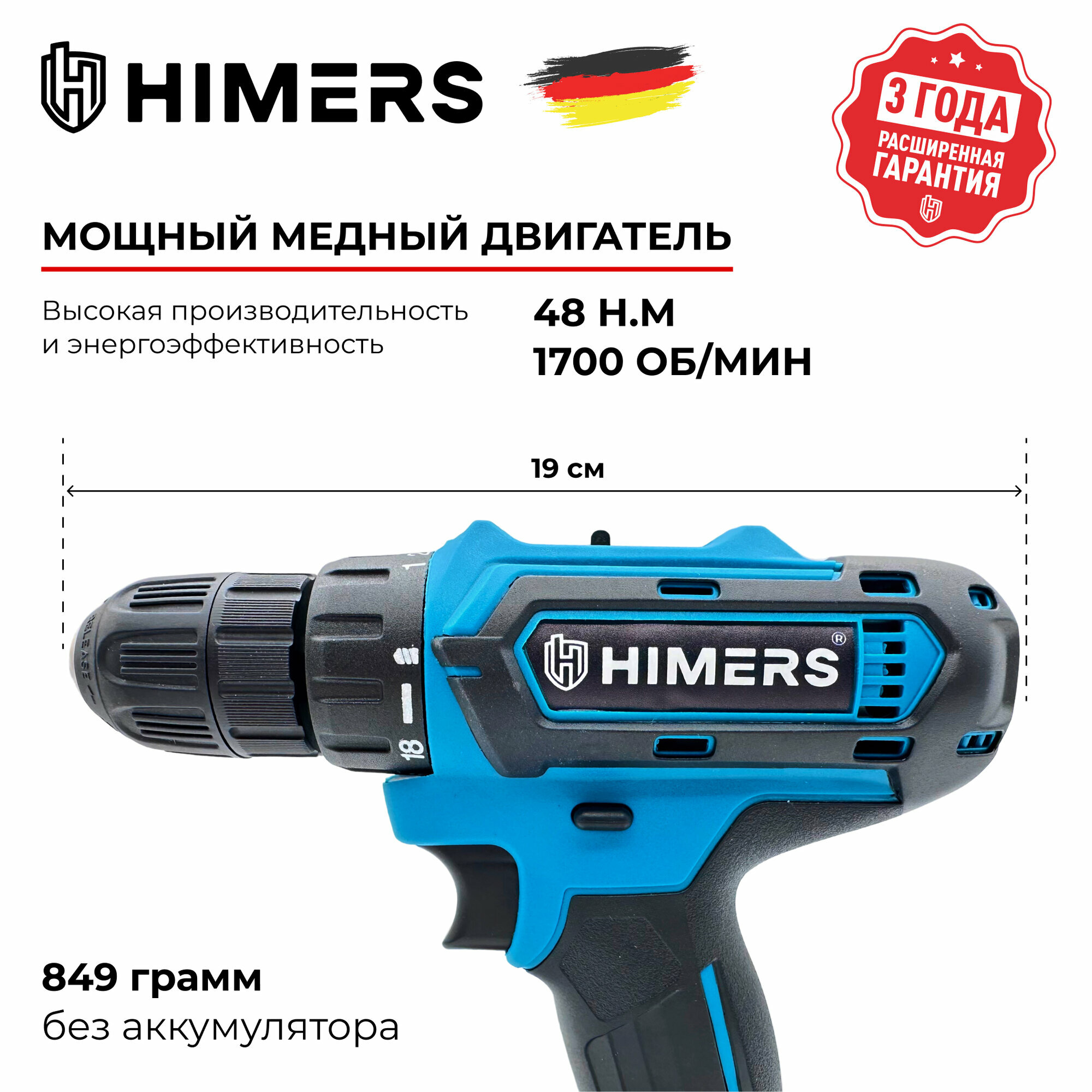 Дрель - шуруповерт HIMERS DF48B аккумуляторный 21V, 2 АКБ, 43 Н. м /, кейс