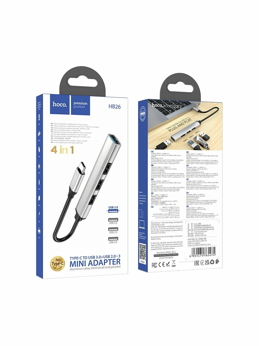 Ниже Вы можете прочитать отзывы на Hoco HB26 4 in 1 adapter(Type-C to USB3.0+USB2.0*3) gray, ознакомится с подробными характеристиками, посмотреть интересные обзоры и фотографии на Hoco HB26 4 in 1 adapter(Type-C to USB3.0+USB2.0*3) gray.