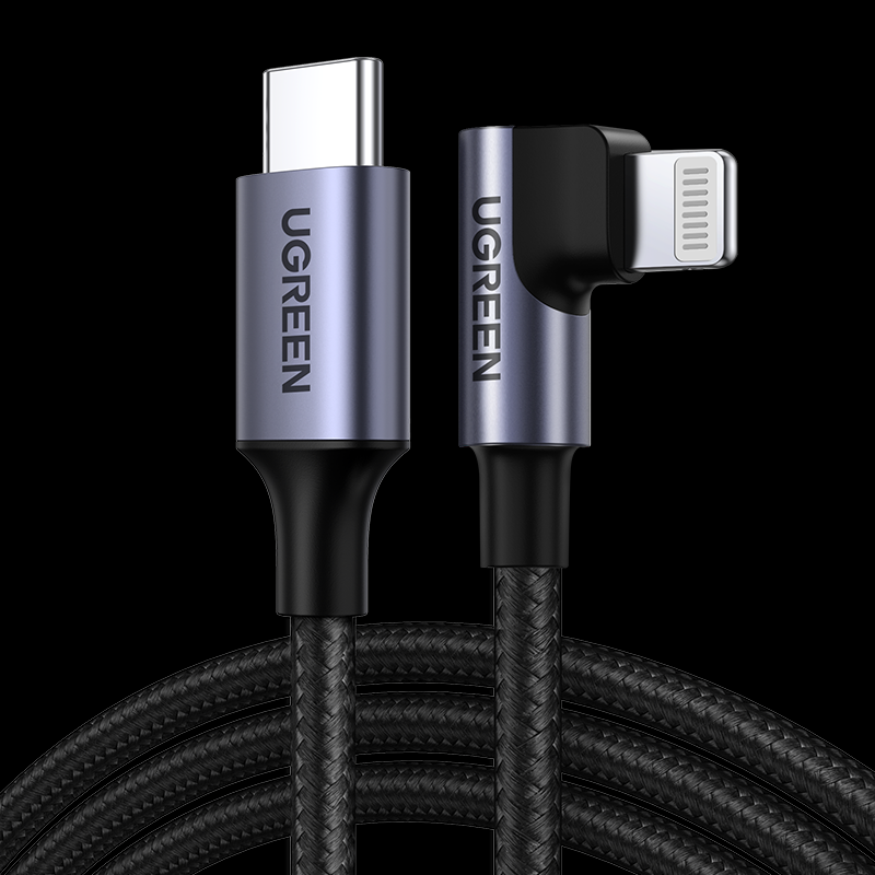 Кабель угловой US305 (60763) UGREEN USB-C to Lightning Angled Cable Aluminum Shell Braided. Длина 1 м. Цвет: черный