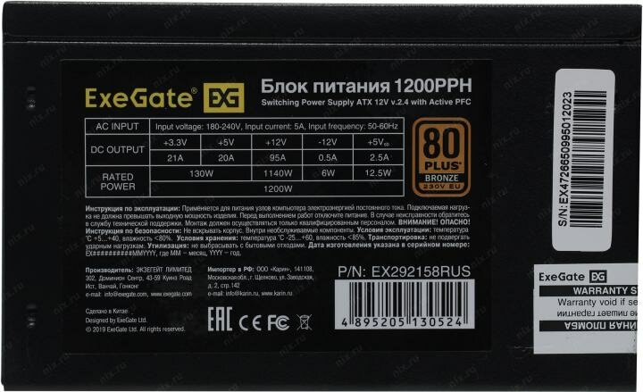 ExeGate 1200PPH 1200W 80 Plus Bronze EX292158RUS-S