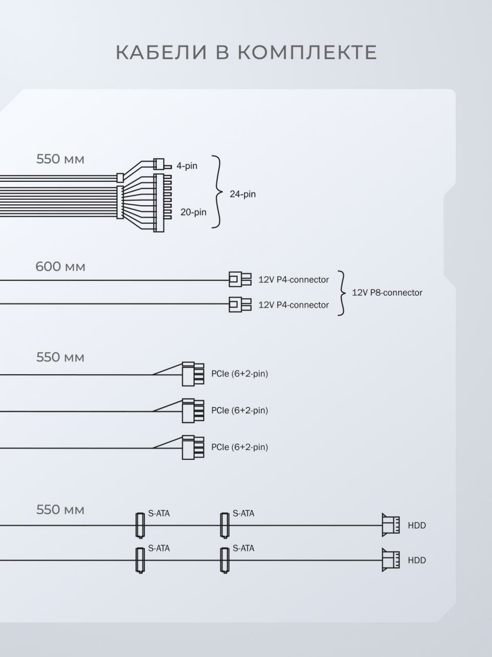 | Тип разъема для материнской платы | 20+4 pin |