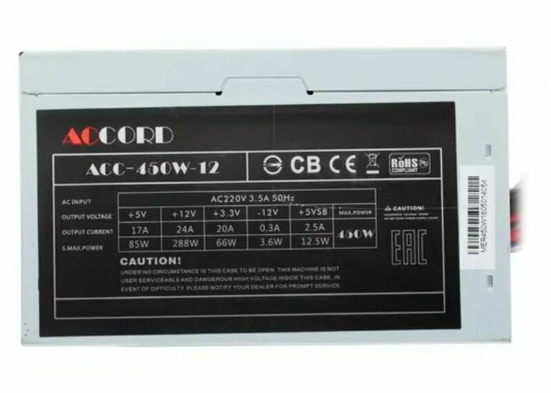 Блок питания Accord ATX 450W ACC-450W-12 интересное: