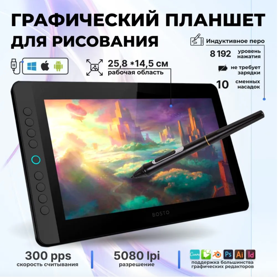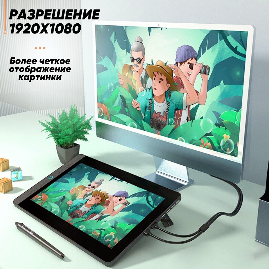 Графический планшет для рисования Houft Интерактивный дисплей с разрешением экрана 1920 x 1080 и диагональю 11 дюймов интересное: