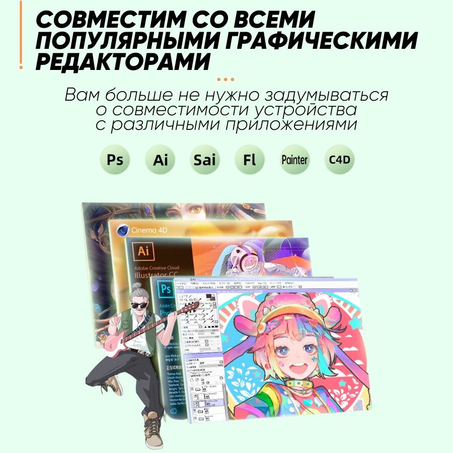 | Минусы: | Стиллус тяжеловат если сравнивать с графическим планшетом от Wacom |