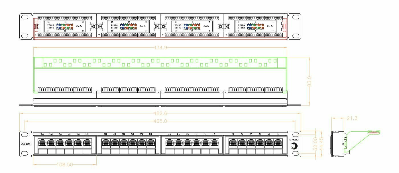 Cabeus Патч-панель 1U 24 порта RJ-45, категория 5e, PL-24-Cat.5e-Dual интересное: