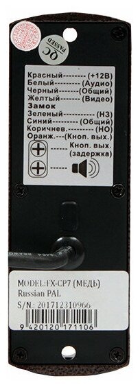 | Дополнительная информация | размеры вызывной панели 122х 41х 23 мм |