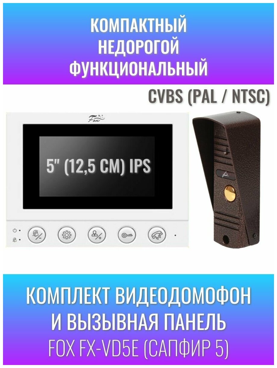 Видеодомофон FOX FX-VD5E-KIT, белый [fx-vd5e-kit (сапфир 5)]