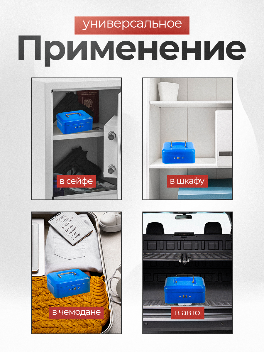 Ящик для денег SAFEBURG Keeper-20 Blue Gloss, переносной сейф, кэшбокс, тайник, шкатулка для ценностей, 3 отделения