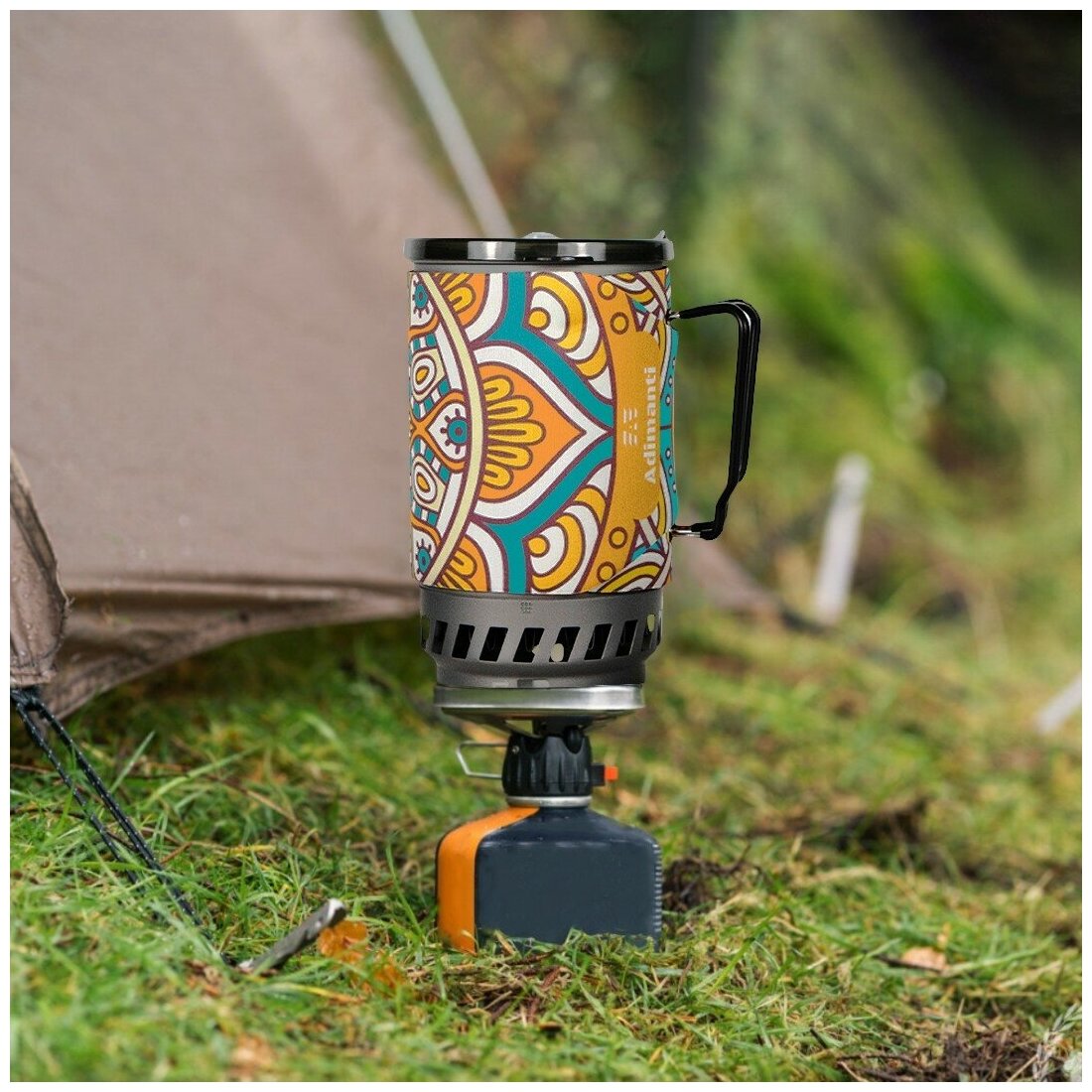 . средний баллон газа (который чётенько, плотненько вмещается внутрь кружки вместе с горелкой и подставкой баллона) . можно рассчитывать на 3 дня на двоих (за день выпиваются 4-5 термосов по 1,2л + ежедневная готовка вечером сушеное мясо разварить и гречку в том бульоне доварить) . всем хороша эта реактивная кружка, однако крышка пованивает пластиком (сделана из чего то некачественного), . даже будучи прокипяченной в кастрюле часами, . даже будучи вымоченная в бочке с дождевой водой неделями, . даже пройдя десятки циклов кипячения воды в самой кружке, ... один ччерт воняет :( ... впрочем воду она однажды перестает ароматизировать, но все равно неприятно при использовании в горном чистяке чуять пластиковое амбрэ . (1,2 литра разом на термос, впритык закипятить возможно) |