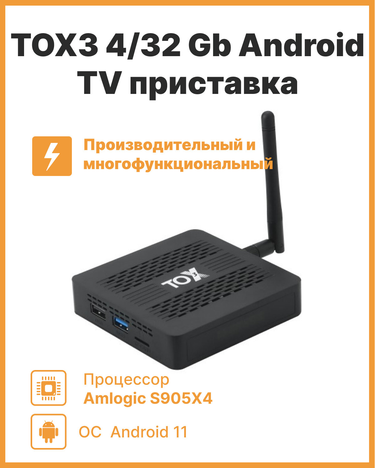 Смарт ТВ приставка TOX3 4/32 ГБ, Amlogic S905X4
