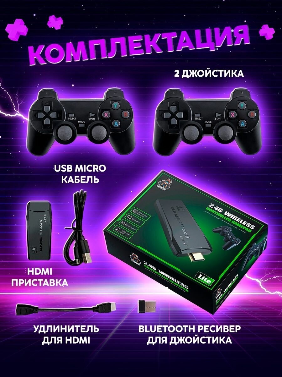Игровая консоль приставка для телевизора Game Stick Lite/ ТВ/ TV приставка, 20 000 игр