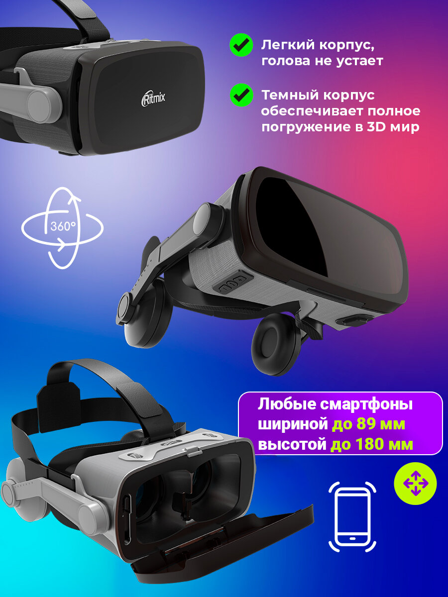 VR Очки виртуальной реальности для смартфона MN-GI5E-BT с геймпадом черные