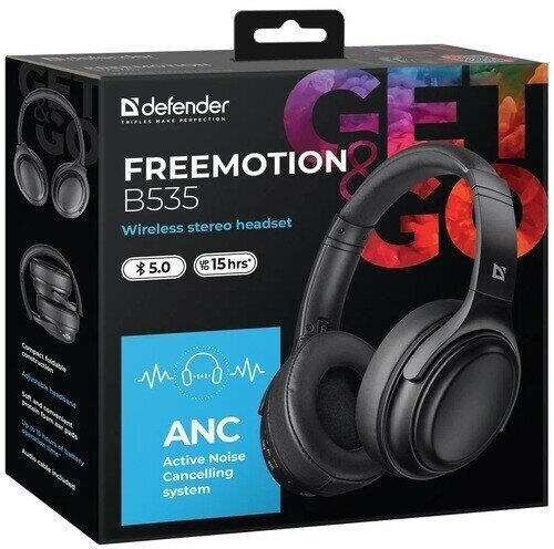 Наушники беспроводные Defender FreeMotion B535 черный, Anc, Bluetooth .