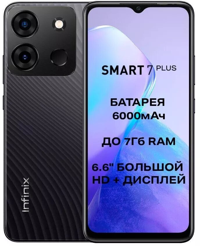 Купить Смартфон Infinix Smart 7 Plus 3/64 ГБ Global для РФ, Dual nano SIM, черный