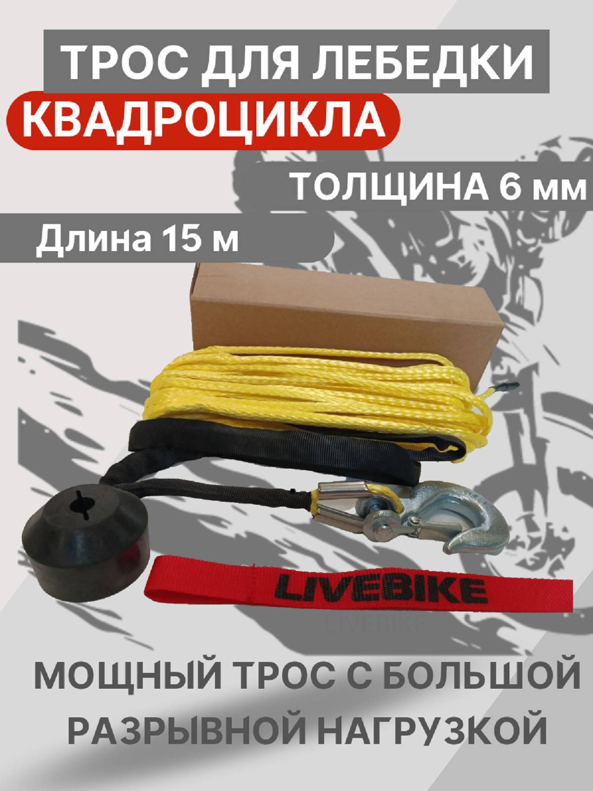 Трос для квадро (ATV) лебедки синтетический 6мм х 15м с крюком и стопором, желтый интересное: