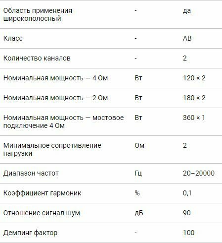 | Мощность на канал (4 Ом) | 120 Вт |