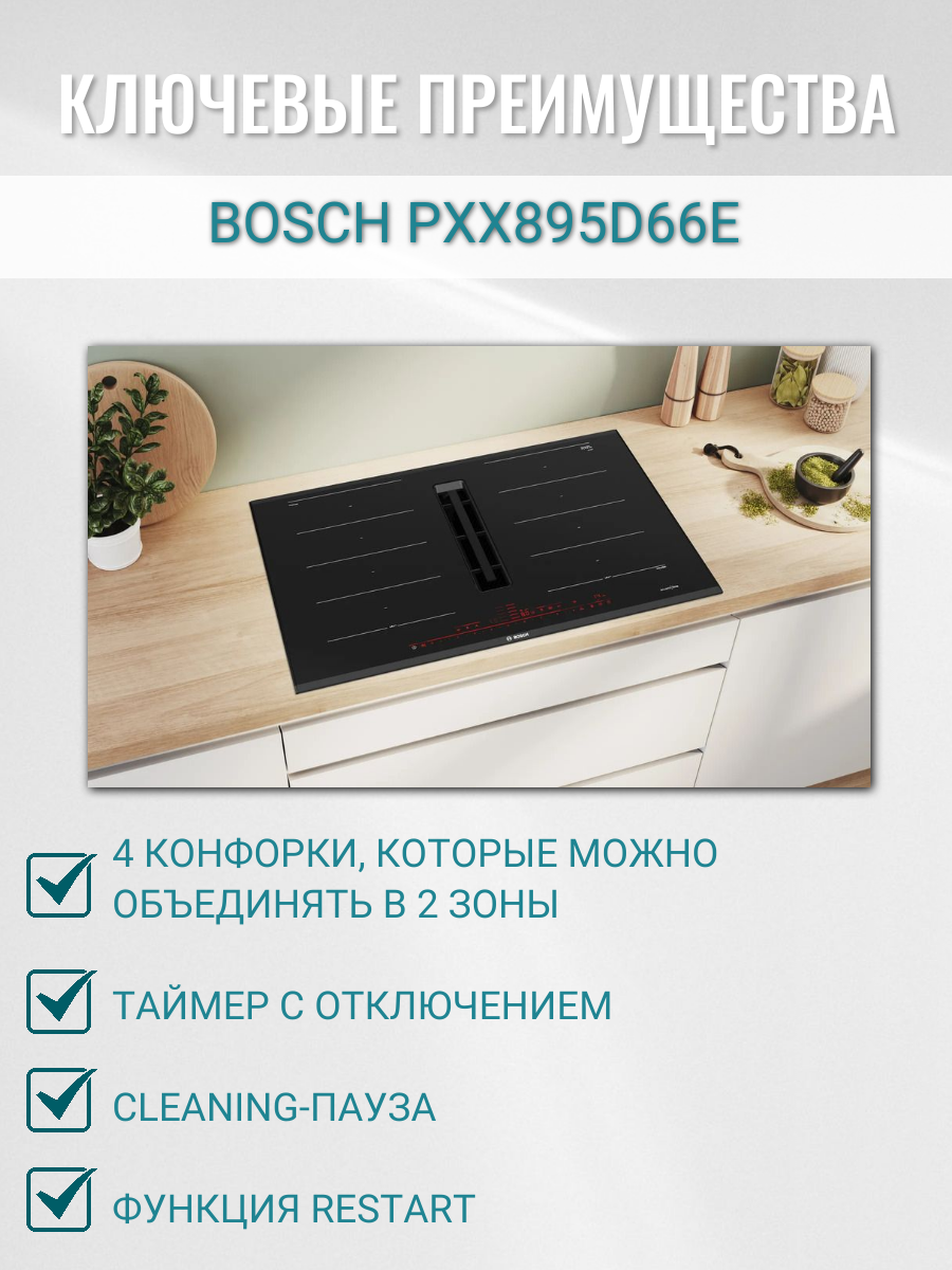 Индукционная варочная панель Bosch PXX895D66E, независимая, черный интересное: