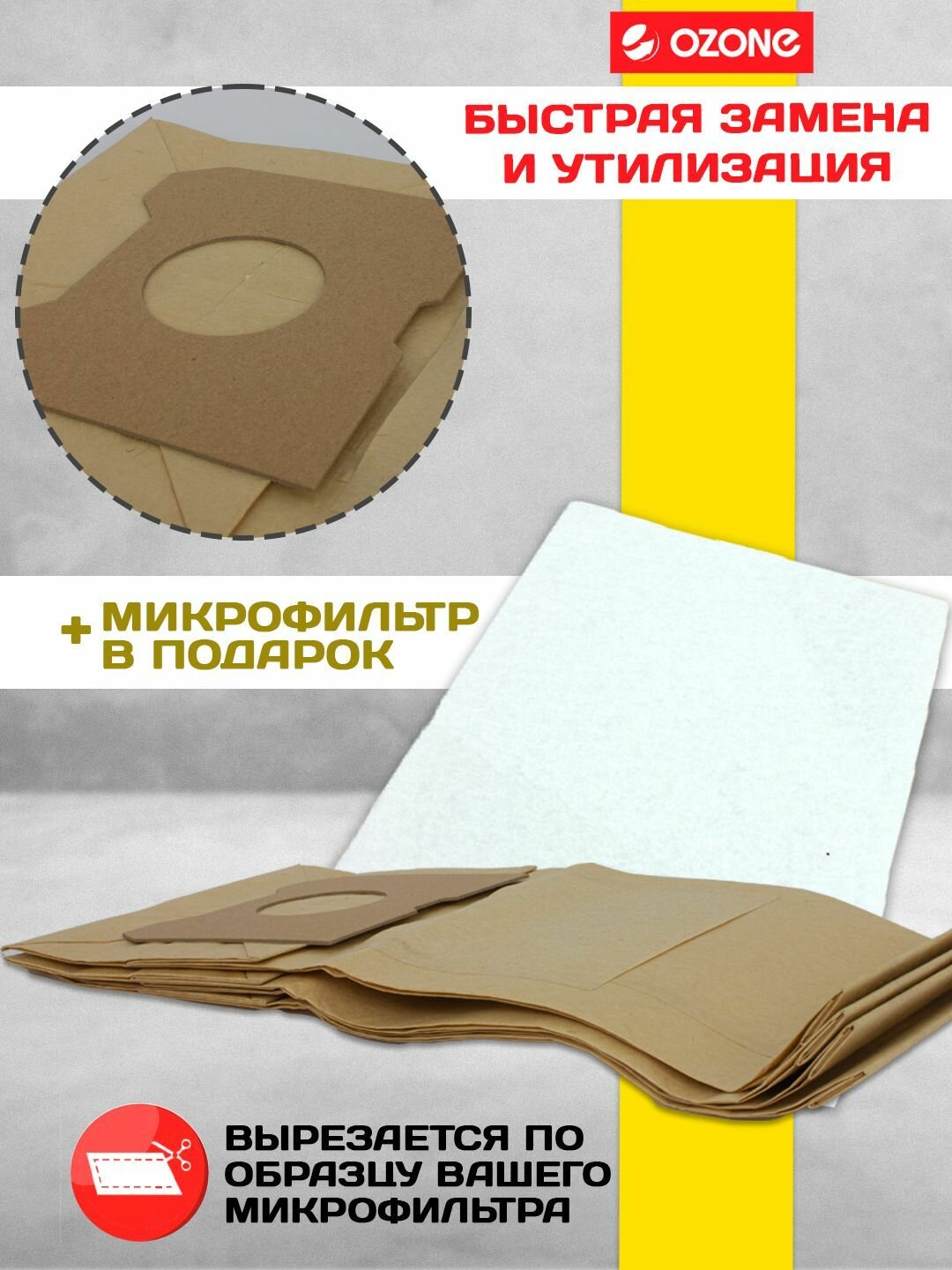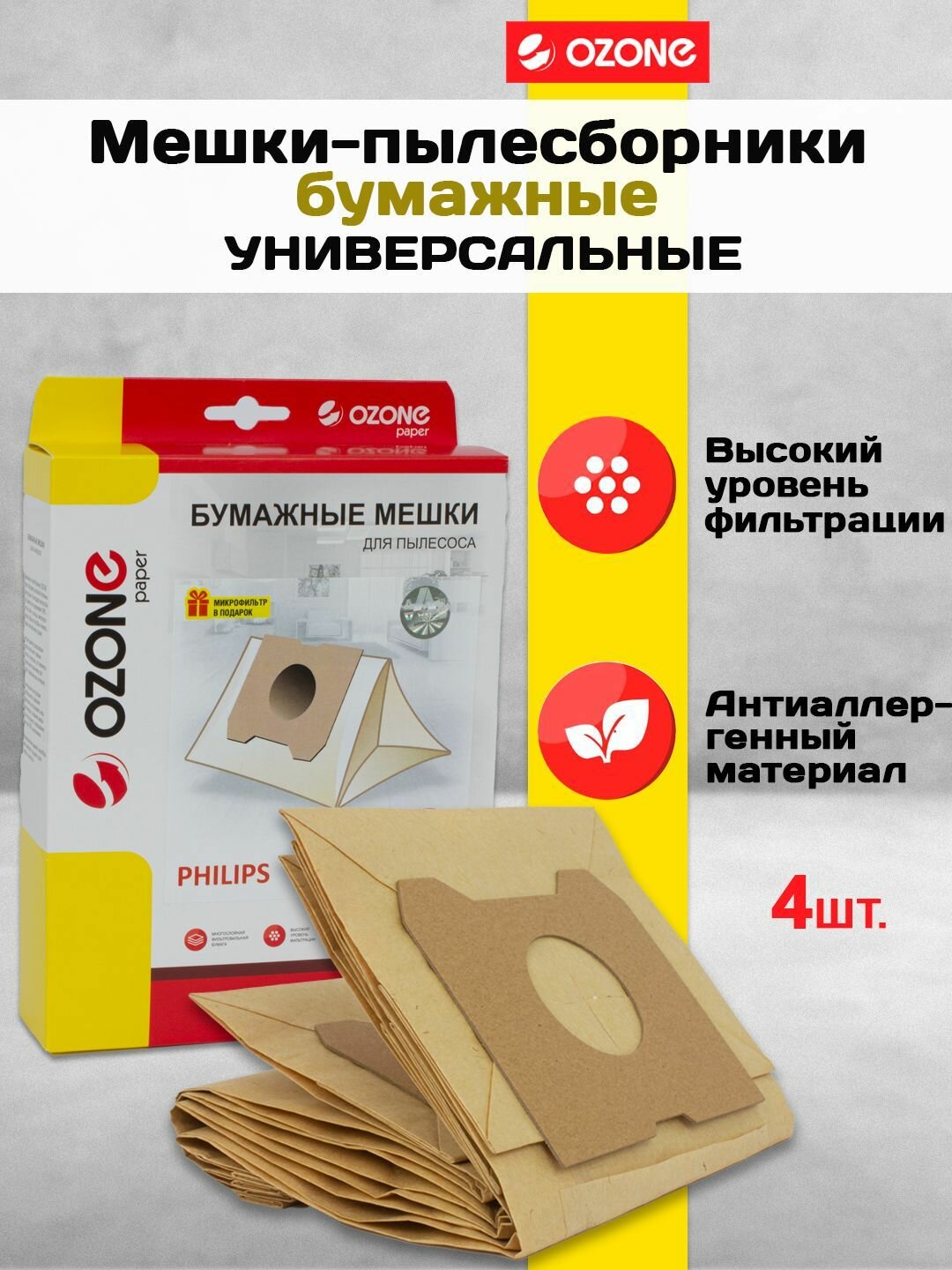 OZONE Мешки-пылесборники бумажные для пылесоса, 4 шт + микрофильтр P-10